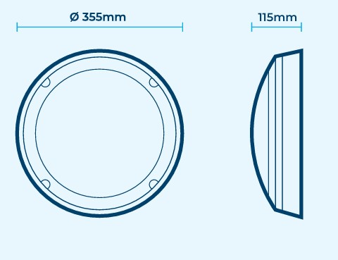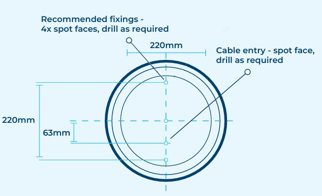 Circular surface anti-ligature and impact-resistant luminaires. Satin polycarbonate cover secured via spun aluminium bezel using tamper-resistant pin Torx screws.