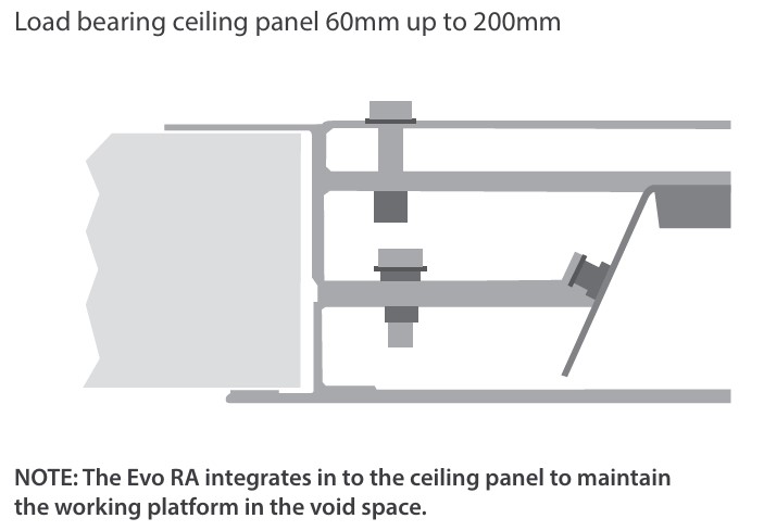 The Evo RA luminaire is a high performance rear access walk-on luminaire. It is designed to flush fit (top & bottom ) into composite load bearing ceiling panels with a thickness of 60mm and upwards. The Evo RA is suitable for mounting heights of 2.8m up to 10m plus.